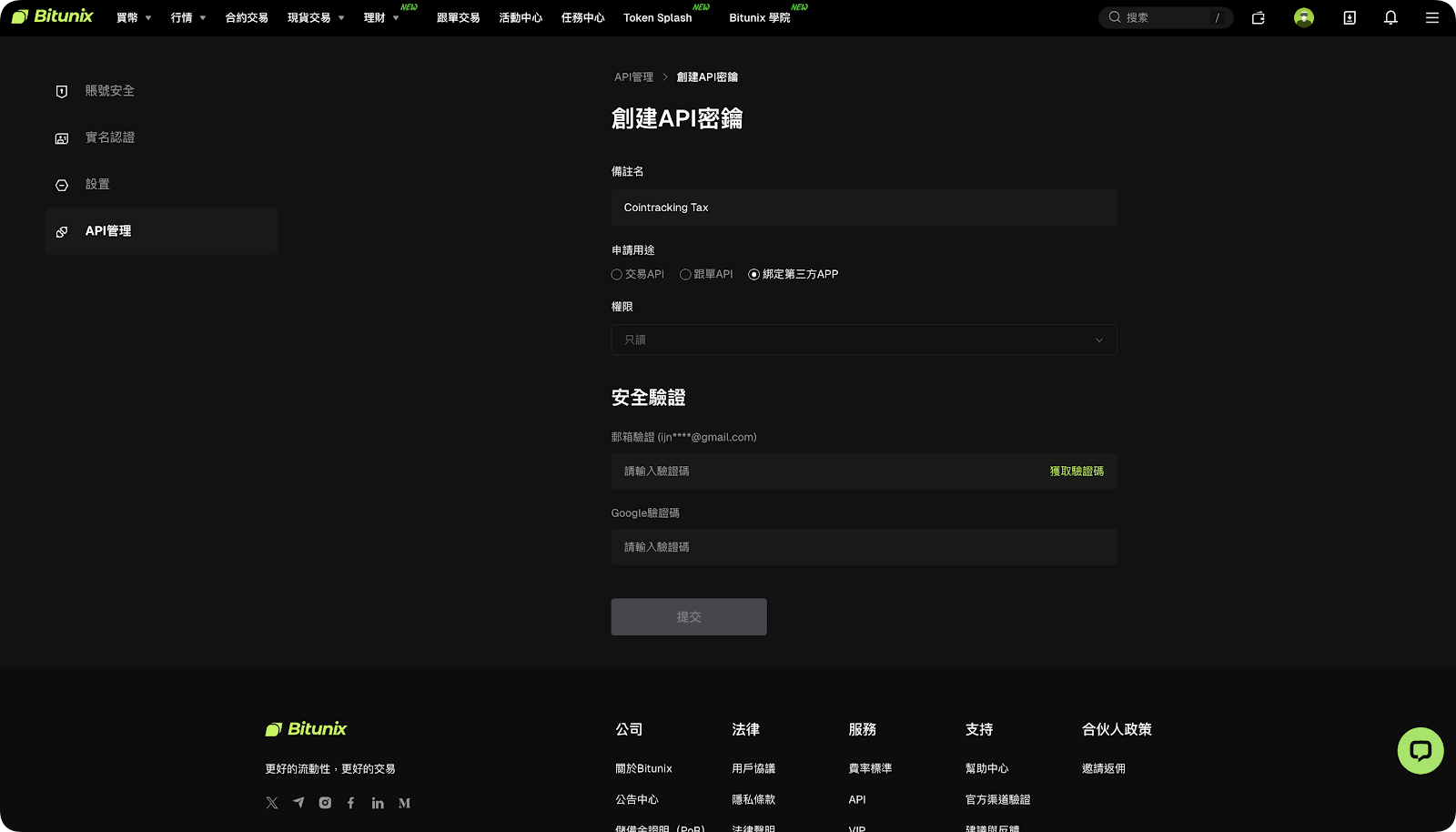 步驟一:在 Bitunix 生成 API 信息