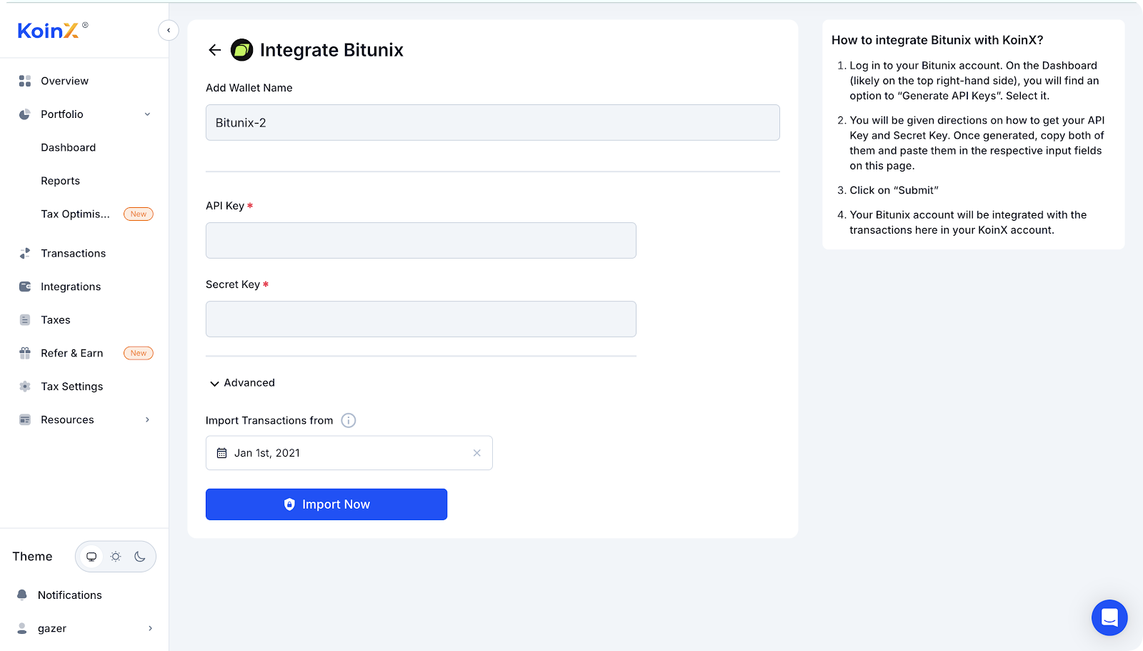 1、登入你的 KoinX 帳戶